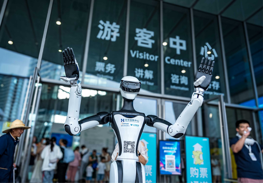 在成都自然博物館,芯華創新中心與星宇紀元聯合打造的超擬人人形服務機器人星動Q5成了“明星”。“它身材苗條,有7軸高精度擬人手臂,操作高度超2米,還能主動避障。”芯華創新中心智能無人事業部負責人胡松介紹,星動Q5可提供多語言講解、自主路徑規劃,還能與小朋友握手、背古詩。